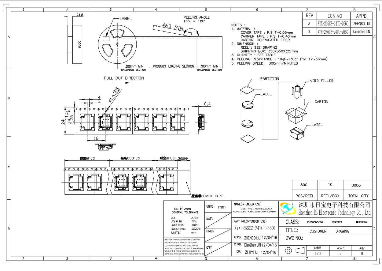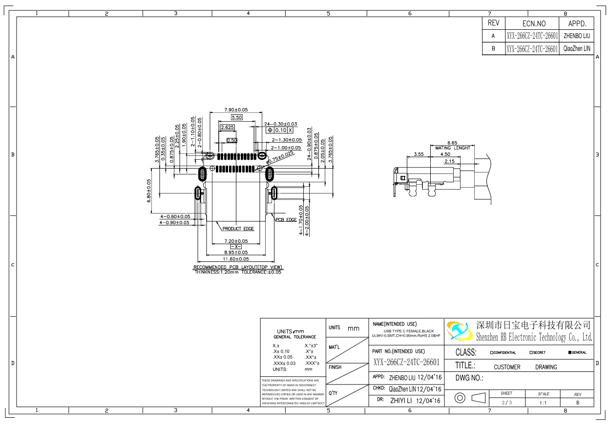 TYPE C 24P母座 沉板2.0MM 雙排SMT CH=0.7MM L=8.58MM(小米MX2/8SE尾插接口)